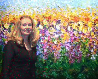 Sandra's is best know for her large oil-on-canvas paintings of flowers and trees. With bold brush strokes, she reveals the beauty of nature, often with a close-up perspective that brings into focus the wonderful depth and range of color of our natural world.